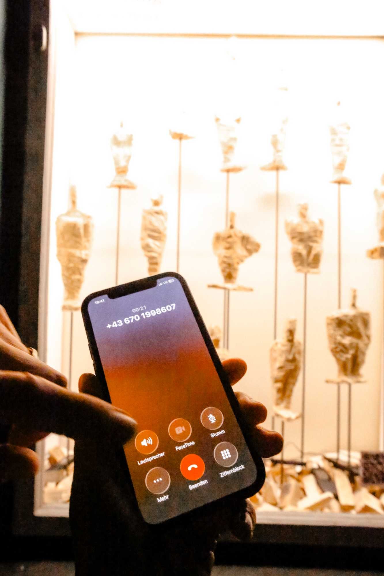 Jeder der 14 Figuren ist jeweils ein Mobiltelefon zugeordnet und eine Mailbox für Anrufungen, Fürbitten oder andere Nachrichten eingerichtet.