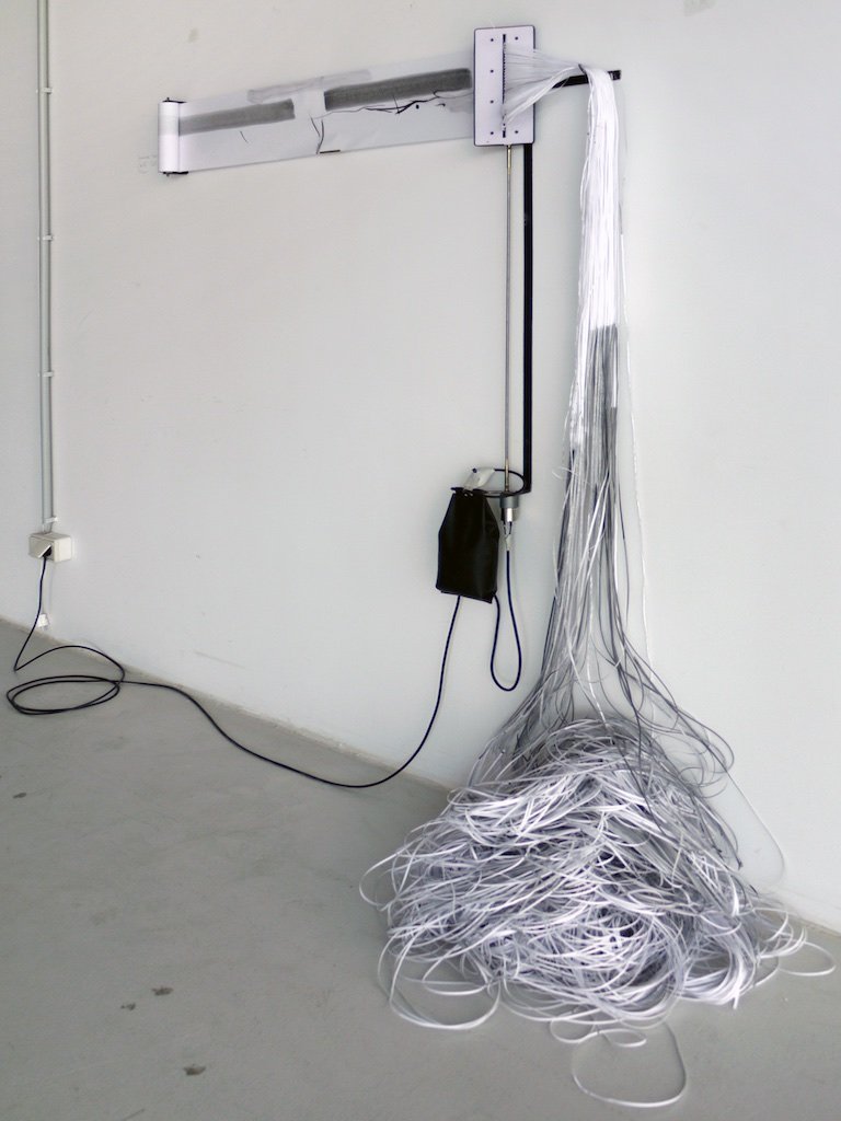 Metallkonstruktion, 30m Zeichnung auf Papierrolle, modifizierter Aktenvernichter, Bewegungsmelder, Getriebemotor