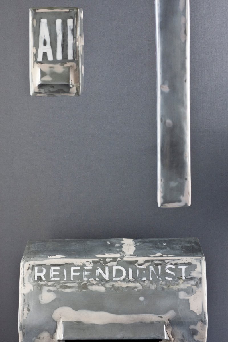 Reifendienst 2008, Zinkblech, Lack, 13 x 32 x 18 cm