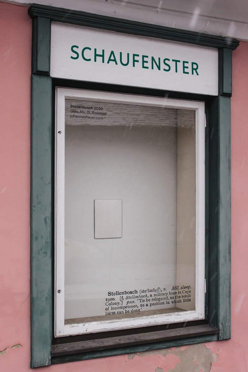 2021, 26x20cm, Gips, Alu, Wachs, Öl; Rosshaar - Ausstellungsansicht