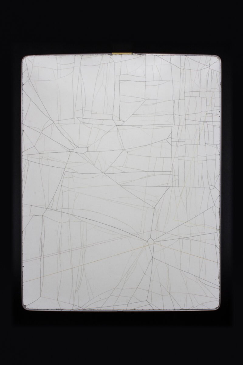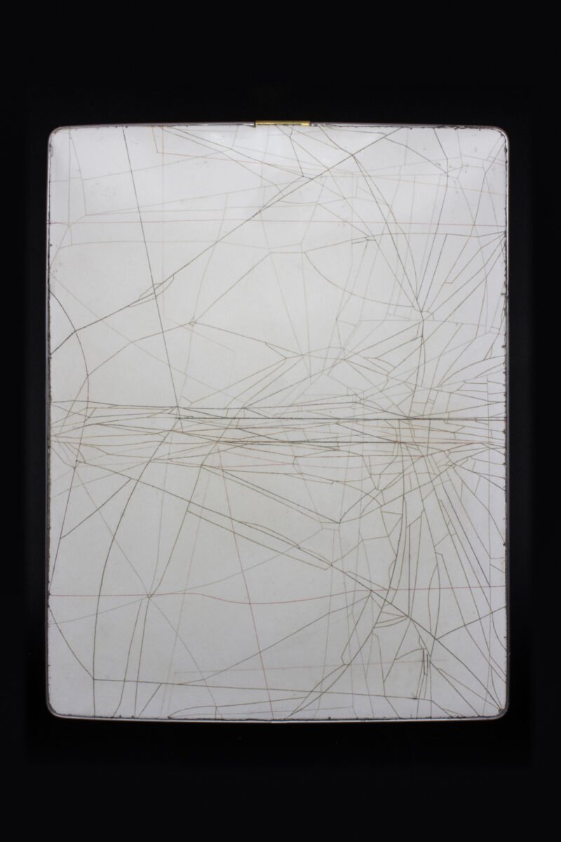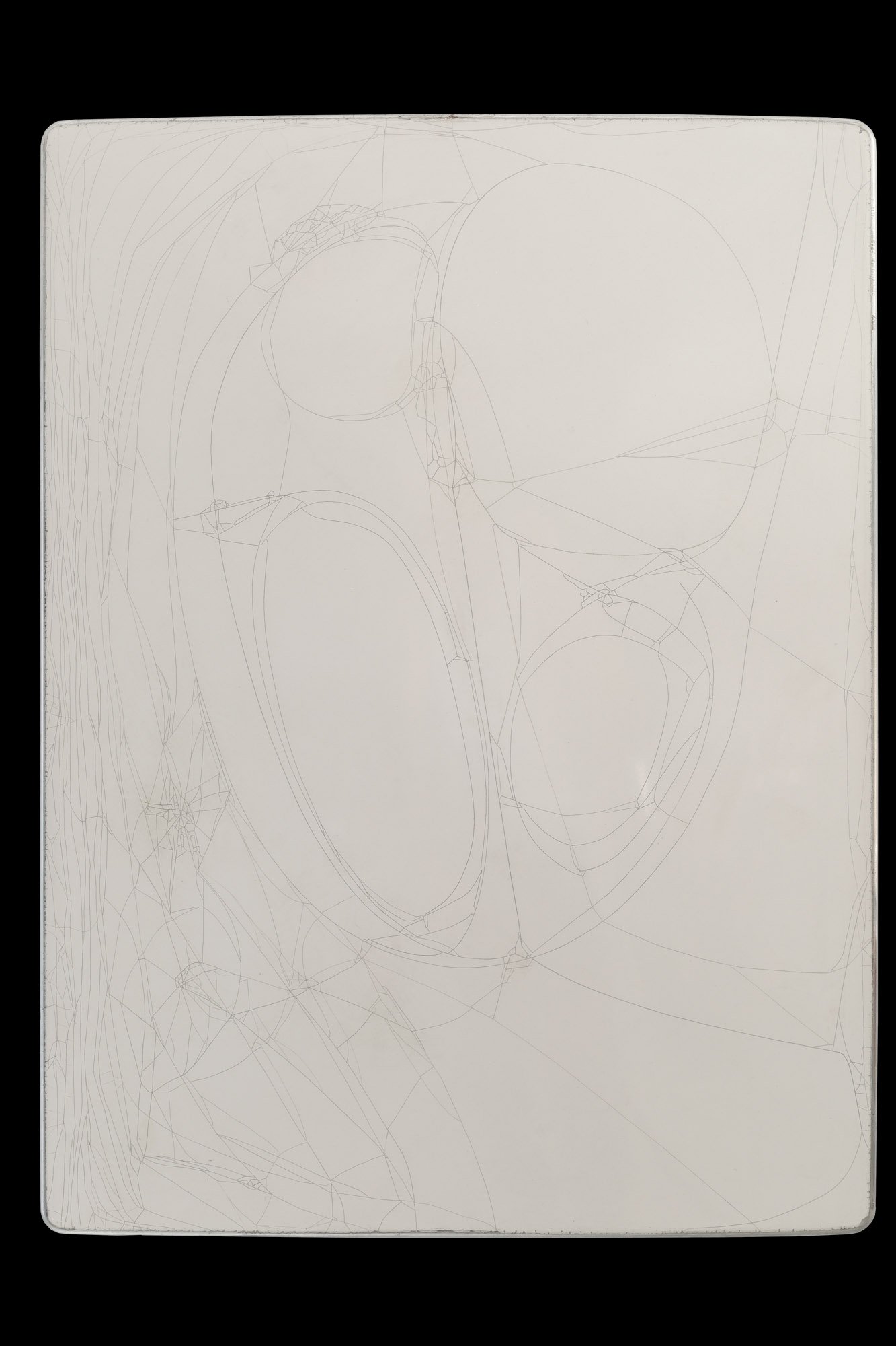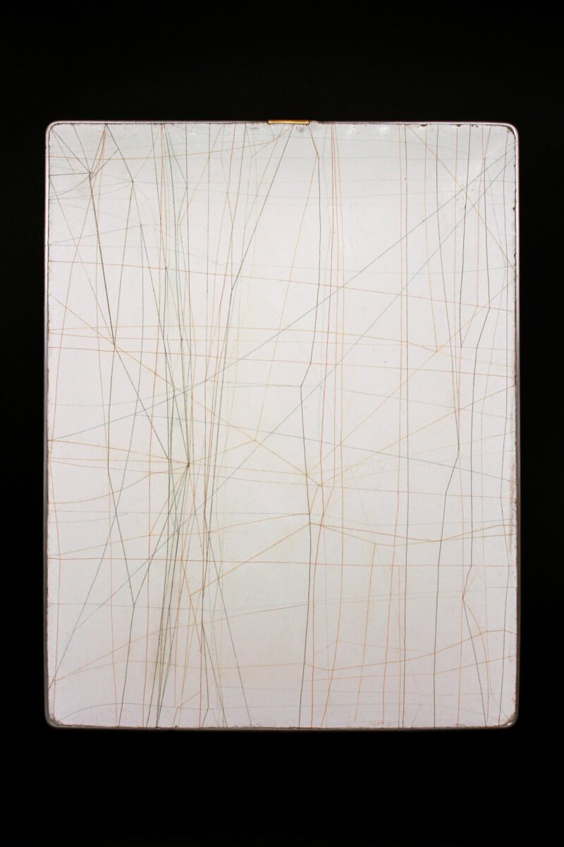 Ritzungen, Intarsien, Öl, Rosshaar, auf Gipsguss in Aluminiumrahmen