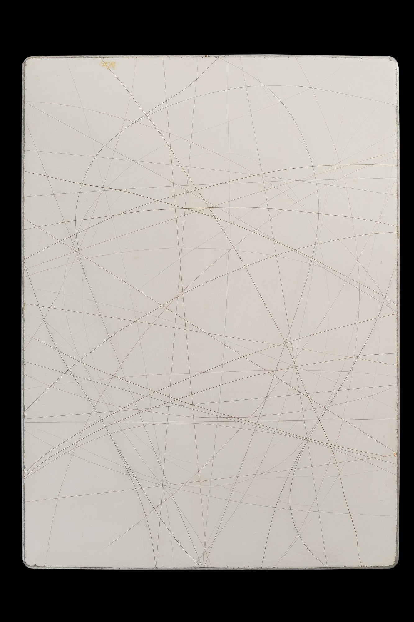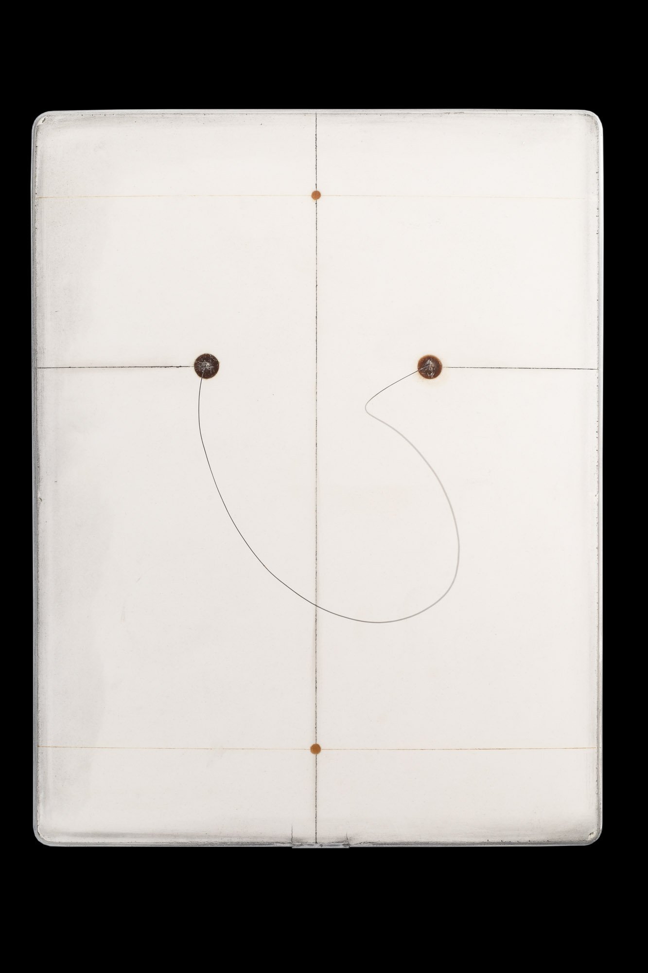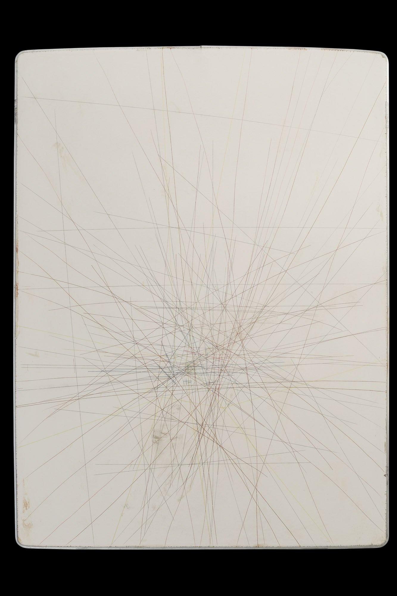 Ritzungen, Intarsien, Öl, Rosshaar, auf Gipsguss in Aluminiumrahmen