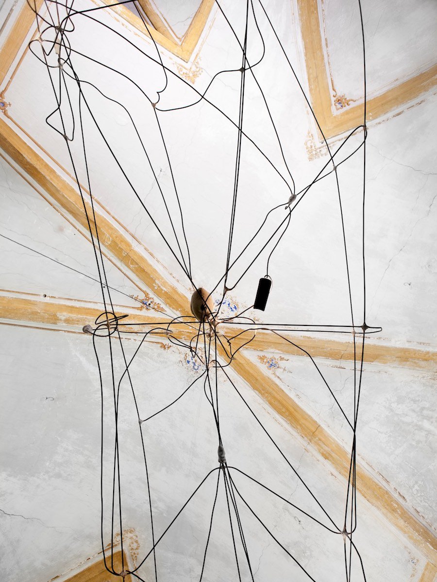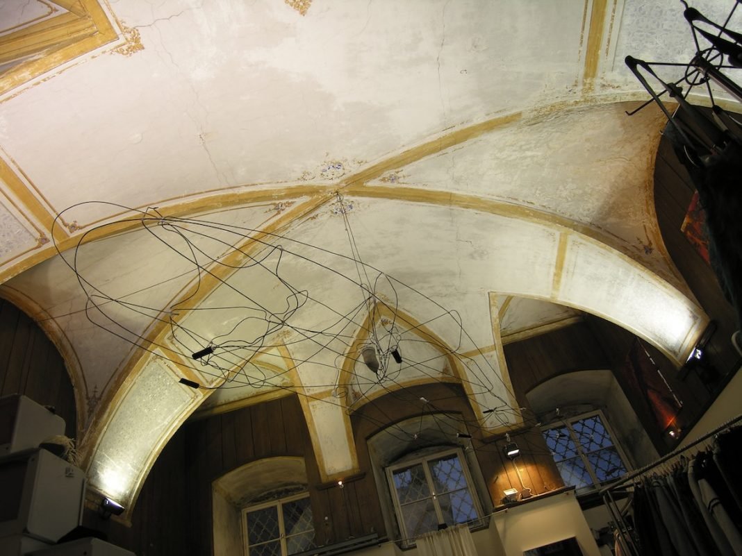 Der Künstler, dessen Werk ein sehr breitgefächertes ist, präsentiert den Konstrukteur, den Perfektionisten, der bis zuletzt am Arbeitsstück feilt und überlegt. Einer, den das Maschinelle und Energiegeladene herausfordert, jedoch steht hier das Funktionale nicht im Mittelpunkt, es ist eher die Anmut und der Reiz, etwas beinahe Vollkommenes vor der Fertigstellung im Bereich des Kippens sich selbst zu überlassen und es so verweilen zu sehen. Sämtliche Strenge verweigert er dem Objekt, das an einem Punkt zur Balance gezwungen wird und in seiner barocken Üppigkeit fragile Zerbrechlichkeit demonstriert. Ein im Raum schwebendes metalloides Lichtschiff, das mit sachten Bewegungen drahtwollverschattende Lichtreflexionen auslöst und amorphe, kryptische Zeichen an die Wände projeziert. Es stellt für mich kein Lichtobjekt im herkömmlichen Sinn dar und es auf ein solches zu reduzieren würde bedeuten, die eigentliche Lichtquelle und Magie, von der es gespeist wird, nicht wahrzunehmen. Johannes Heuer bindet Raum und Lichtschiff in eine imaginäre Sattelkammer verborgener Wünsche ein, die die Installation zur eigenen Vision verschmelzen lässt. Kühne Präsentation eines raumfüllenden Objekts ohne Aufdringlichkeit, das im Stillen dominiert.
